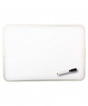 Both dry erase and magnetic, this board is perfect for use in a classroom, at home, or at the office. Features a magnetic and non-magnetic side for use. Comes with a magnetic dry-erase marker pen with cap eraser. Measures 12" x 17.5".