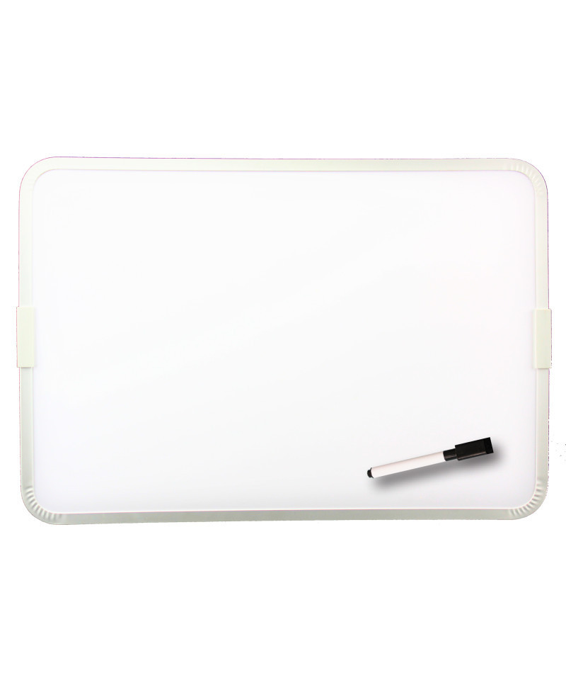Both dry erase and magnetic, this board is perfect for use in a classroom, at home, or at the office. Features a magnetic and non-magnetic side for use. Comes with a magnetic dry-erase marker pen with cap eraser. Measures 9" x 12".