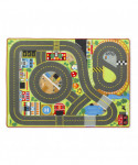 - Let your child explore the world of this activity rug, which features a construction site, a hospital, a speedway and more.