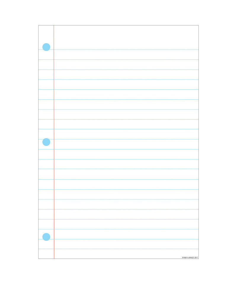 This material from Ashley is called SMART POLY. The material has been designed for charts in the classroom and home. These charts are strong, durable, water proof, and do not need lamination. They can be displayed like any chart with staples, pins, and more. The surface is designed for dry erase and water based markers. Notebook Page Lined Smart Poly Chart measures 13" x 19" with a dry-erase, glossy surface, .45mm.
