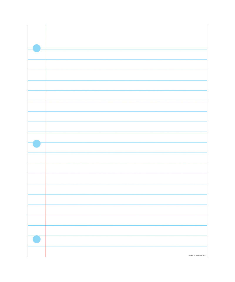 This material from Ashley is called SMART POLY. The material has been designed for charts in the classroom and home. These charts are strong, durable, water proof, and do not need lamination. They can be displayed like any chart with staples, pins, and more. The surface is designed for dry erase and water based markers. Notebook Page Lined Smart Poly Chart measures 17" x 22" with a dry-erase, glossy surface, .45mm.