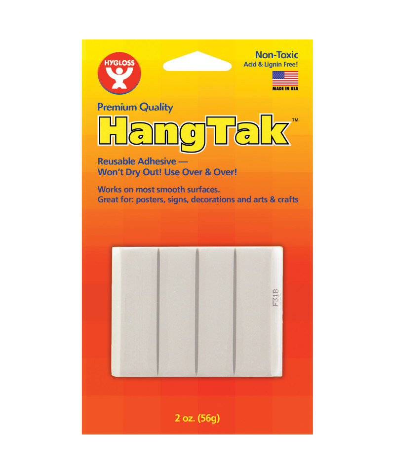Hang a wide variety of things in your classroom or home with our reusable, non-toxic, removable HangTak. Works on most clean, dry interior surfaces because of its superior quality. Double the quantity of most other brands, which makes Hygloss HangTak a great value! Each pack includes 2 ounces of HangTak.
