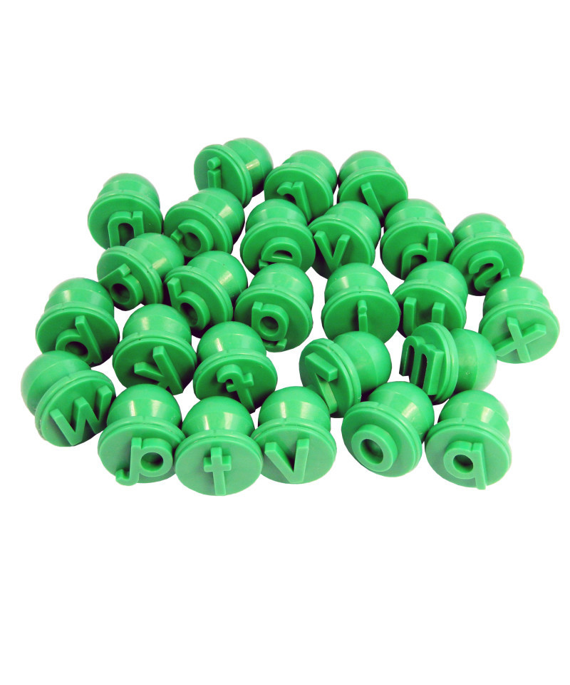 - A-Z ALPHABET RUBBER STAMPS -- This set includes 27 alphabet stampers with raised rubber lowercase letters a-z and ñ.