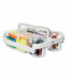 Essential for bringing supplies with you, or organizing a small space. The Stackable Caddy Organizer lets you stack and carry multiple storage caddies with the "lift & lock" feature—up to 40 pounds combined! Each Stackable Caddy Organizer features a frame and three removable plastic storage containers (large, medium, small). Clear storage containers let you see items at a glance and are easy to remove from the Caddy frame. Hinged snap-tight lids keep items secure, but are easy to remove when you're ready to work. Use to organize arts and craft supplies or general household items. Measures 14"W x 6 1/2"H x 10 1/2"D.