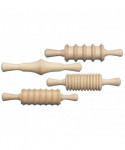 Children of all ages will enjoy the timeless pleasures of clay crafts. Provide students with the tools needed for hours of creative fun. Natural coated finish to protect wood and to prevent sticking of clay. 6-3/4" long, tip to tip. 1-1/2" diameter. Set includes four clay rolling pins, each with a different design.