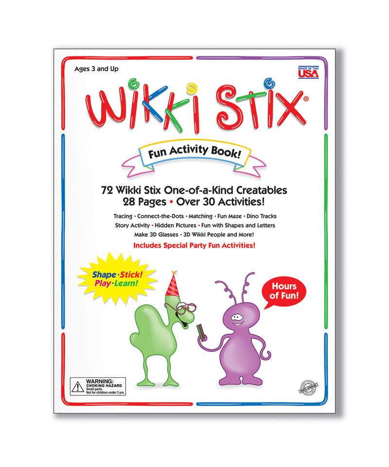 Activity Book includes 72 Wikki Stix to make fun activities mistake-free! Easy to use Wikki Stix provide hands-on engagement for matching, counting, shapes, letters, numbers in sequence and simple free-form art. Book includes 28 pages.