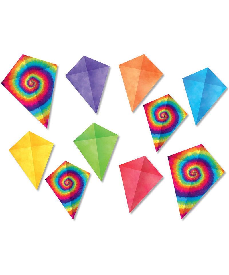 Use accents to liven up bulletin boards, desks, lockers, and cubbies! Can be used as name tags, labels, or to highlight student work. Add your own ribbon or string to craft a festive bunting, or hanging mobile. Accents are an excellent resource for use in kid-crafting or art projects. Two kite sizes are included, large tie-dyes measure 8-1/8'' H x 6 1/8'' W; small kites measure 6-1/4'' H x 4-3/4'' W, in tie-dye swirl pattern and six solid-colors. We've included bonus uncut kite bows. Just cut out bows to add with your ribbon or string to create kite tails for a hands-on activity. Each pack includes 40 precut kites.