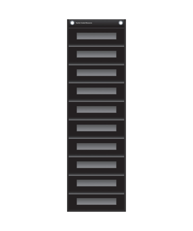 These lightweight and durable pocket charts feature colorful designs and hang easily from sturdy, metal grommets. 10 folder-sized pockets. Clear Label holders. The non-porous surface is easy to clean and can be wiped-down or sprayed with disinfectant to help prevent the spread of germs. Measures 14" x 58".