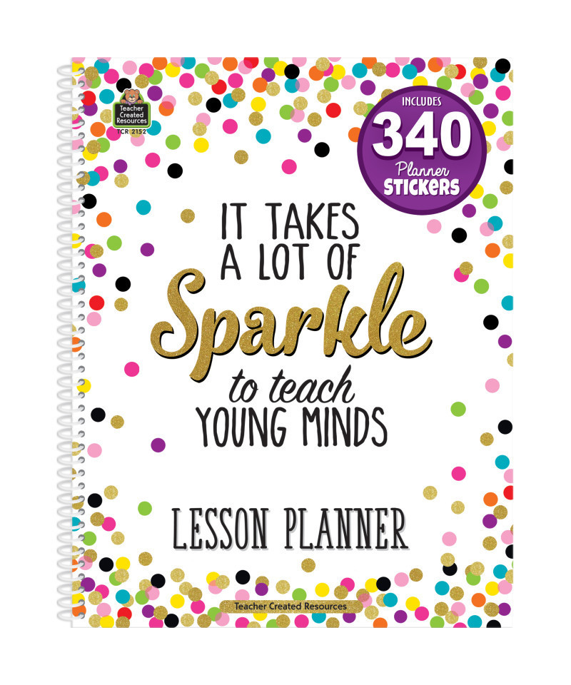 Keep up to 40 weeks of daily lesson plans in one convenient book! This book includes substitute teacher information, student roster sheets, and memorable quotations to use and discuss throughout the year. 12 large monthly planning calendar spreads are also included for year-long lesson planning as well as for scheduling appointments, conferences, and events. The lesson planner also includes a variety of colorful stickers to use throughout the year. Whether you need to prioritize the day's events, add weekly reminders, highlight something special, or simply provide a bit of inspiration these cheerful stickers will keep your lessons beautifully organized. Includes 112 pages plus 340 planner stickers. Measures 8-1/2 x 11". Spiral-bound.