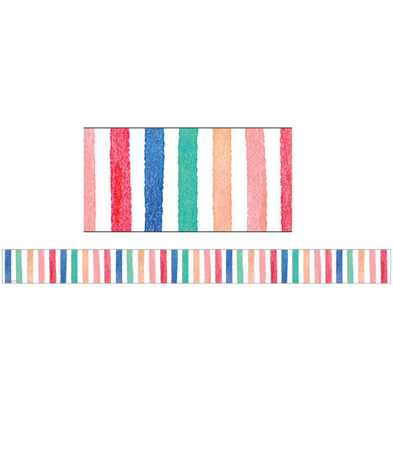 Use colorful border trim to liven up your classroom! Create fresh looks for bulletin boards, windows, walls, and class projects. Mix and match with coordinating products (stickers, notepads, awards, etc.) for a classroom theme. Each pack has 12 pieces (3" x 35") for a total length of 35 feet of trim!
