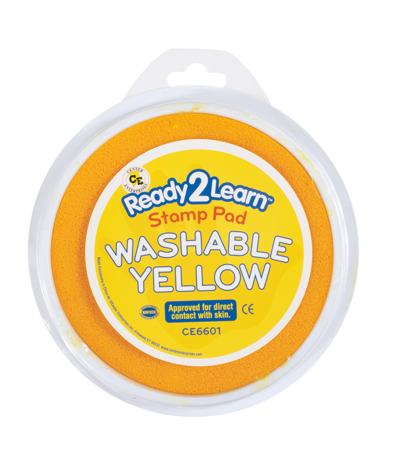 Stamp and create with this yellow Jumbo Circular Washable Stamp Pad! Made of non-toxic ink, this stamp pad is safe for ages 3+. The ink is acid-free and fade resistant for archival quality, which makes you can store your little artist's creations forever! An open-ended tool to decorate scrapbooks, notebooks or cards, this stamp pad inspires creative expression and imagination. As children stamp, they will develop fine motor skills and hand-eye coordination. This stamp pad features a huge 5.75" diameter for handprints and baby footprints. The ink comes clean with soap and water. Size of ink pad surface area: 5.75" dia.