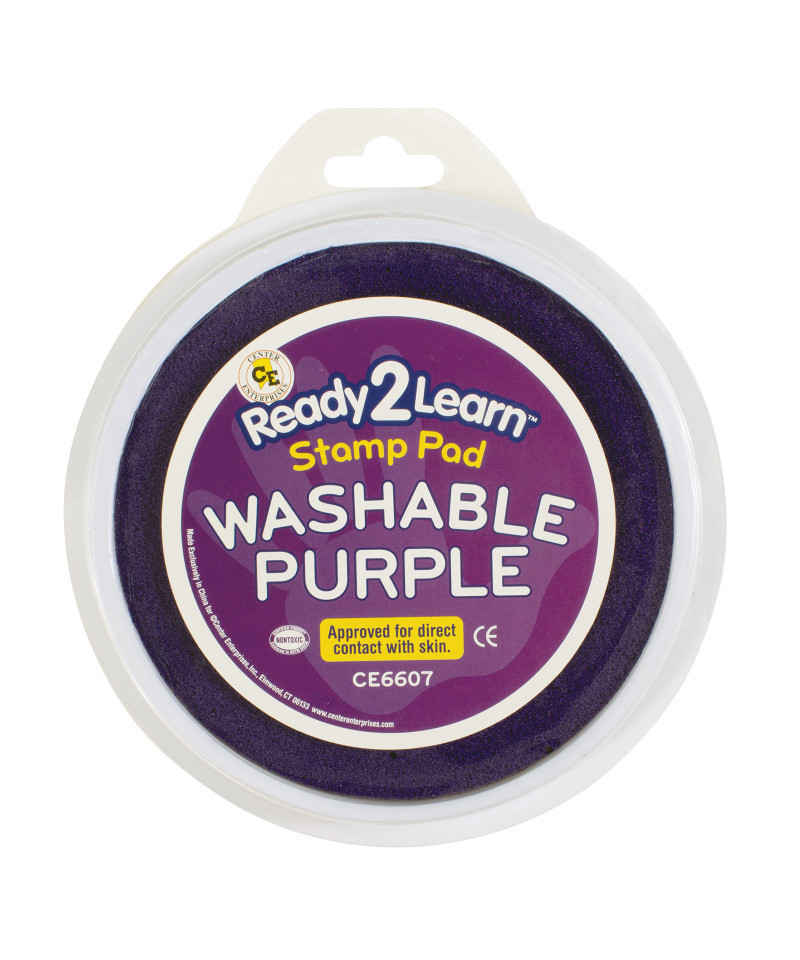 Stamp and create with this purple Jumbo Circular Washable Stamp Pad! Made of non-toxic ink, this stamp pad is safe for ages 3+. The ink is acid-free and fade resistant for archival quality, which makes you can store your little artist's creations forever! An open-ended tool to decorate scrapbooks, notebooks or cards, this stamp pad inspires creative expression and imagination. As children stamp, they will develop fine motor skills and hand-eye coordination. This stamp pad features a huge 5.75" diameter for handprints and baby footprints. The ink comes clean with soap and water. Size of ink pad surface area: 5.75" dia.