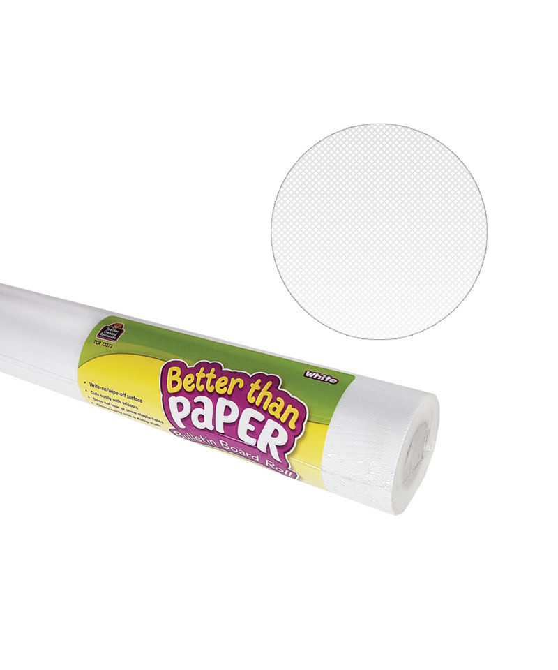 This revolutionary non-woven fabric makes creating beautiful bulletin board backdrops quick and easy! The lightweight material is simple to hang—no more struggling with paper that wrinkles and tears. Attach border trim, accents, posters, and student work with staples or tape and remove without ripping or leaving conspicuous holes. The durable write-on/wipe-off surface can be used again and again. Pack of 4 rolls. Rolls measures 4' x 12' each. Better Than Paper® has been tested, and is not considered to be a flammable solid material according to the Consumer Products Safety Commission 16 CFR 1500.3(c)(6)(vi)