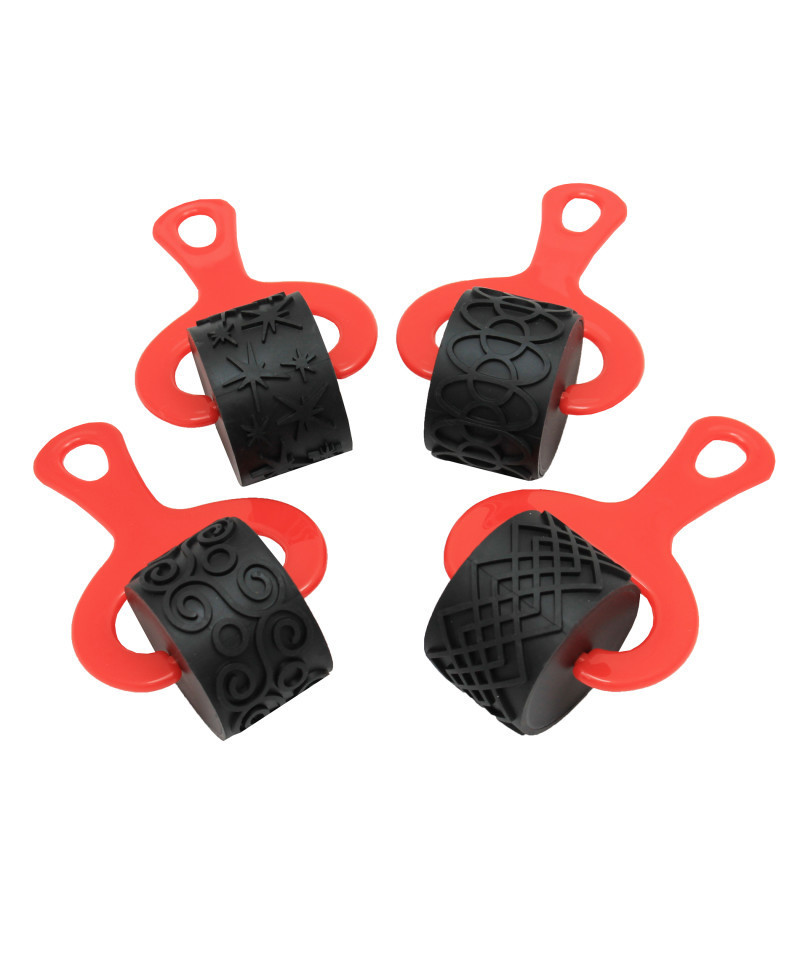 - 4 DIFFERENT PATTERNS -- This set includes 4 heavy-duty, textured rollers with different raised patterns: stars, hoops, swirls and diamonds.