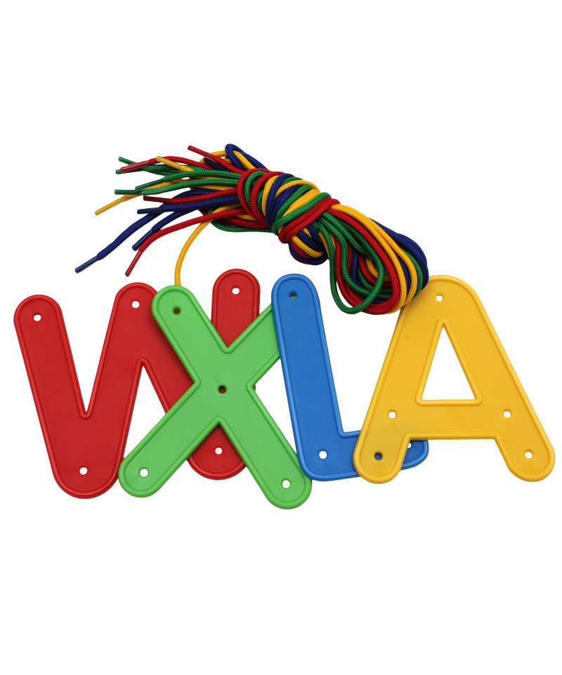 - 34 PIECES FOR ALPHABET ACTIVITIES -- This lacing letter set includes uppercase letters A-Z and 8 laces. Each letter has multiple holes to lace and thread!