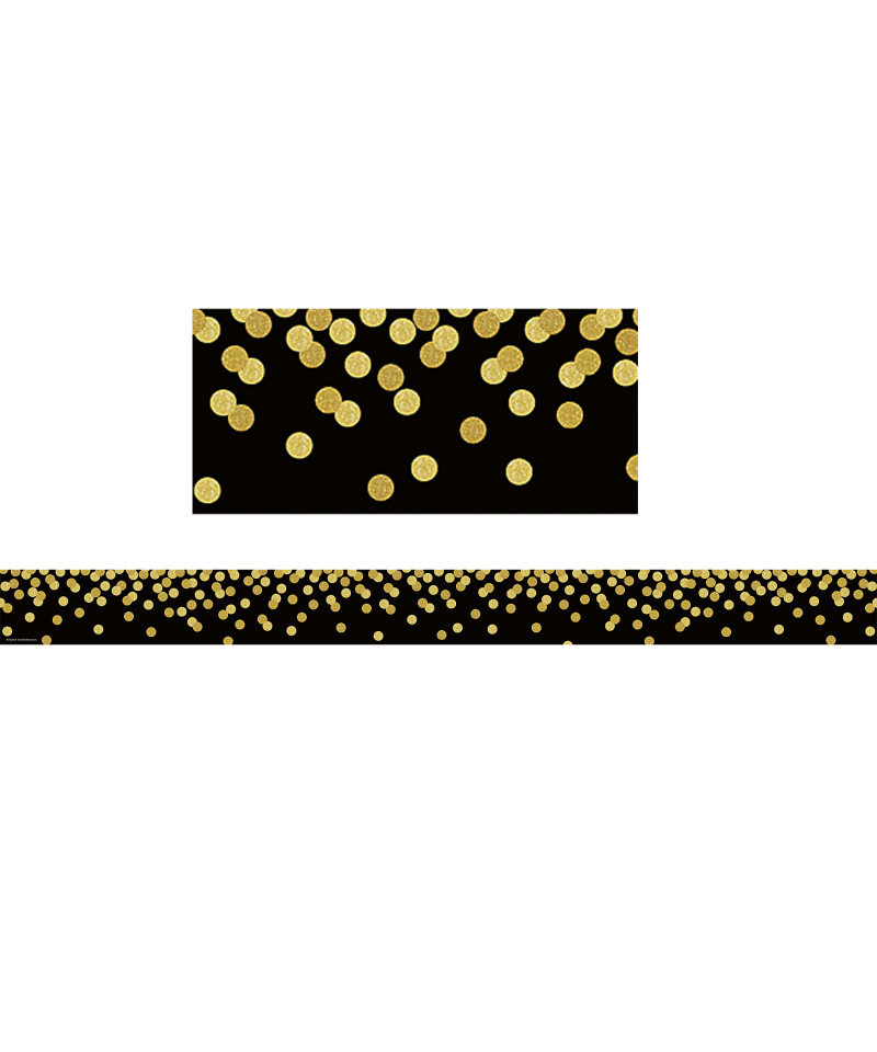 Use Black Confetti Straight Border Trim to liven up your classroom! Create fresh looks for bulletin boards, windows, walls, and class projects. Mix and match with coordinating products (stickers, notepads, awards, etc.) for a classroom theme. Each pack has 12 pieces (3" x 35") for a total length of 35 feet of trim!