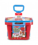 Load up on play kitchen and grocery store essentials and get playtime rolling with this durable rolling grocery basket filled with play food boxes and cans! Lift the basket handle to carry, or extend to roll. Mark the double-sided reusable shopping list with a pencil that stores in the side of the basket! The play set includes five colorfully labeled grocery boxes and three play food cans with pop-off lids for a realistic shopping experience for kids three and older.