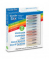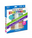 The Wonder Stix can just about write on any surface such as chalkboards, mirror, and wood and paper. It's easily washable from non-porous surfaces. Your imagination can run wild all over the house! Each box includes 24 bright colors.