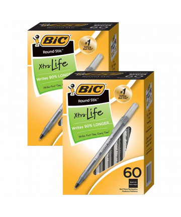 The BIC Round Stic Xtra Life Ball Pen comes with a versatile 1.0mm medium point that creates vivid lines, making it suitable for a wide variety of... Add to cart BIC® Round Stic® Xtra Life Ball Pen, Black, 60 Per Pack,... $29.90