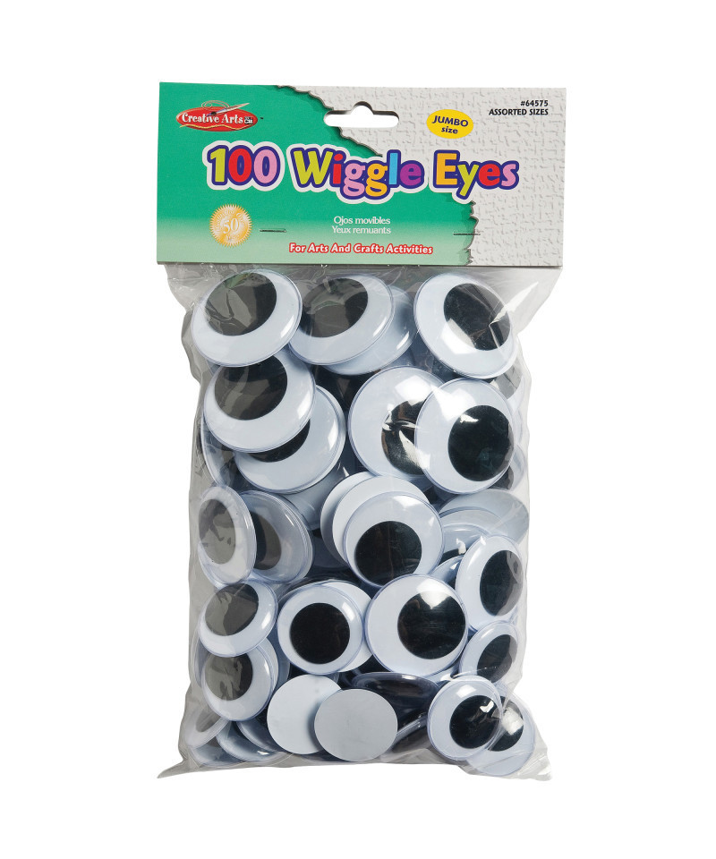 Give your projects "Eye" catching appeal. Wiggle eyes bring life to dolls, animals, toys and more! Features a flat back for gluing. Great for any Arts and Craft Project. Sizes include 28MM, 30MM, 35MM and 40MM. Pack of 100.
