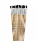 Fine grade natural black bristles. Seamless polished aluminum ferrules are double crimped to handles. Natural hardwood handles feature lacquered finish. Short handled easel brushes are ideal for budding artists. Each set includes 12 brushes.