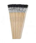 The flat easel paint brush is perfect for arts and crafts. The brush has black bristles, and is 3/4 inch wide. Each pack includes 12 brushes.