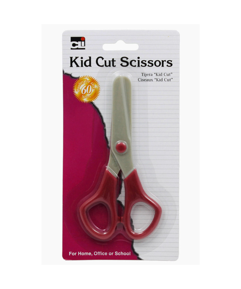 Easy to hold scissors for small hands. Scissors feature an all plastic construction, designed for safety. Will not cut skin or fabric.