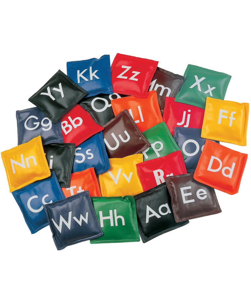 Our Champion Sports Bean Bags are ideal for throwing, catching, and learning. Perfect for tossing games and for developing motor skills, these soft vinyl bags are rugged and hand conforming. The double reinforced vinyl shells have soft corners and are filled with non-toxic plastic pellets. 5" alphabet. This set of 26 bean bags in assorted colors are imprinted with letters.