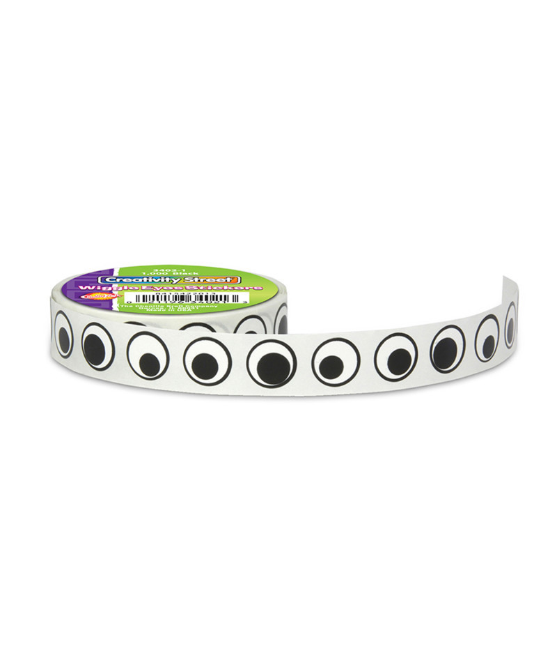 These convenient peel and stick Wiggle Eyes Stickers on a roll adhere easily to different mediums. Over 1,000 self-adhesive 1/2" diameter black Wiggle Eyes per roll.
