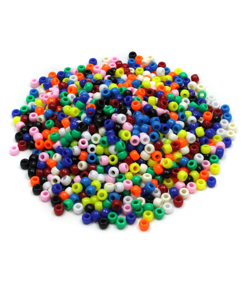 Plastic pony beads are perfect necklaces, bracelets, key chains, and more! The Bright Hues color assortment features several fun colors to make your projects stand out. Each bead measures 6 mm x 9 mm. Large pack size is perfect for parties, classrooms, and other large groups. Each pack includes 1000 beads in assorted bright hues.