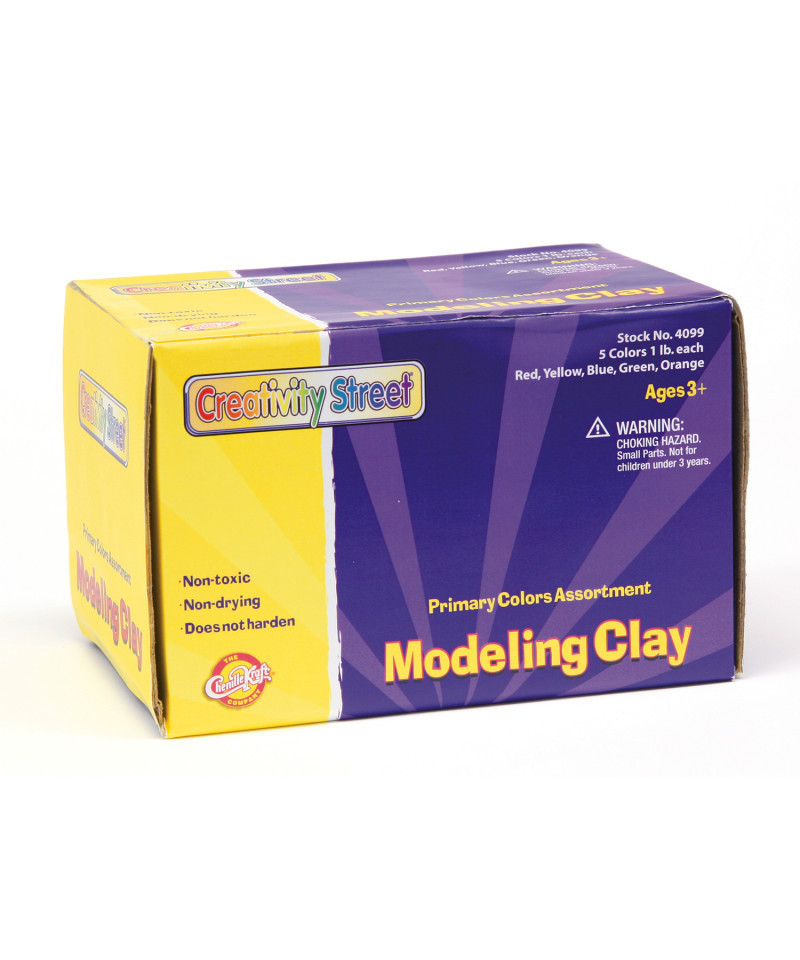 Permanently soft modeling clay. Colors can be blended to create new colors. Great classroom assortment contains 1 lb each of red, yellow, blue, green, and orange modeling clay. Five pounds total package weight.