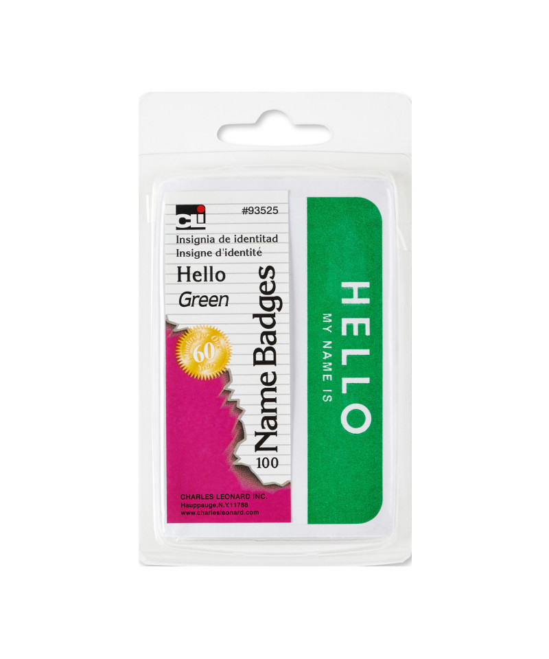 Charles Leonard Labels, Name Badge, Hello My Name Is, 3-3/8" x 2-1/4", Green, Pack of 100