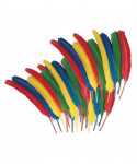 Quill feathers add bright colors to masks, craft projects and artwork. 24 quill feathers with 6 each of blue, red, green and yellow. There is 3 left and 3 right oriented feathers for each color.
