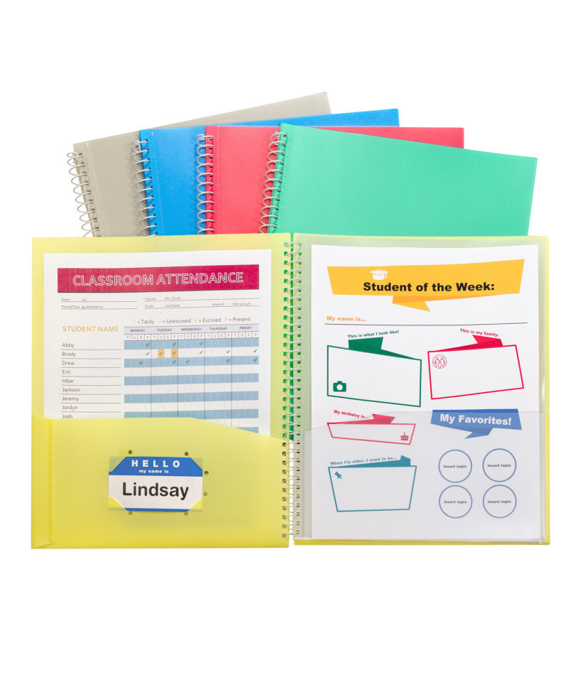 This spiral-bound organization product stores notes and documents in a protective holder. Suitable for both students and professionals, the sleek outer cover provides a stylish appearance to the portfolio. Organize projects, subjects, notes and more in one convenient place. Eight interior pockets allow for detailed organization. Portfolio features clear-view front pocket for cover sheet, double spiral binding and business card holder. Made of heavyweight acid-free polypropylene. For letter-size documents. Assorted colors include Seaside Blue, Sunny Yellow, Seafoam Green, Sunset Red, and Sandy Gray (no color choice).