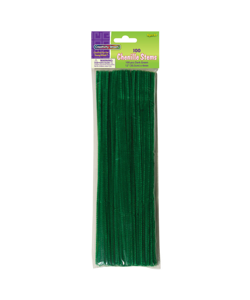 These crush-resistant polyester stems are a 12" length with a 4 mm diameter. To easily see what the product is, they are packaged in a poly bag with header. Green. Each pack includes 100 pieces.