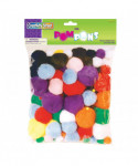 Soft and crush resistant Pom Pons are great for making dolls, ornaments or wherever your creativity takes you. These Assorted Pom Pons are one of our most popular assortments. This package includes six different sizes with specific counts per size. Each pack includes 100 pieces, and sizes include: 15 pieces of 7 mm poms, 20 pieces of 1" poms, 10 pieces of 0.5" poms, 20 pieces of 1.5" poms, 15 pieces of 0.75" poms and 20 pieces of 2" poms per pack.