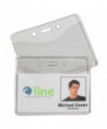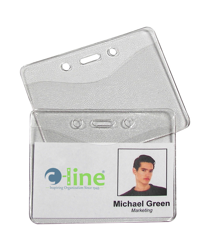 Store and protect work IDs or business cards with the heavy duty, vinyl holders. The slot/chain holes can be used to create a hanging badge, if necessary. Store data/credit card size badges (2 3/8 x 3 3/8) in these heavy duty vinyl holders. Textured back keeps cards from sticking. Box of 100.