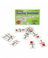 Enliven the day with Fraction Dominoes! This popular game is now enriched with new content to make it even more powerful! Six group and solitaire games offer experience in recognizing fractional parts, matching equivalent fractions, and building sums of one. The 49 dominoes and hexagonal starting board include both pictures and fractional numbers with denominators ranging from 2 to 12. Fractions are shown as parts of wholes or parts of sets. For 1-4 players.