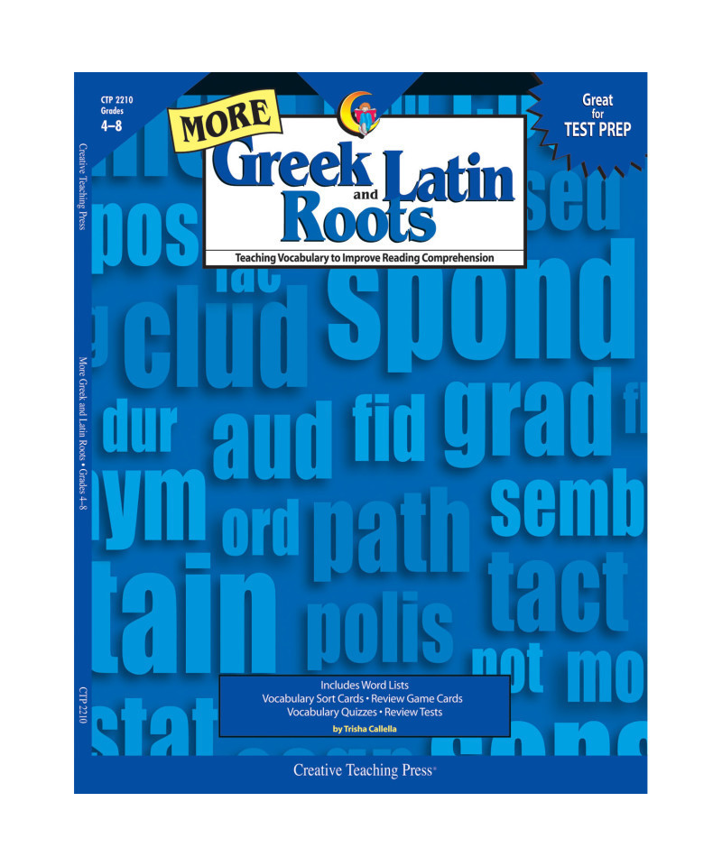 More Greek and Latin Roots follows the same friendly, easy-to-use format as in Trisha Callella's original Greek and Latin Roots and features 30 new lessons to support students' growing vocabulary. The built-in repetition and review will help students overlearn these roots and their meanings so that they become second nature. National standards require that students beginning in 4th grade use their knowledge of common Greek and Latin roots to analyze the meaning of complex words. This book introduces students to 30 new root words. Gr. 4-8. 144 pages.