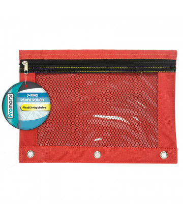 Promarx® 3-Ring Pencil Pouch with mesh window fits all 3 ring binders. Pouch measures 10" x 7.5". Sold in 4 assorted colors: black, red, blue, and... Add to cart Promarx® 3 Ring Pencil Pouch With Mesh Window, 10" x... $2.29