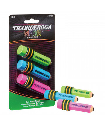 Ticonderoga® Pencil Shaped Erasers make correcting mistakes fun. The entire pencil shape is actually a high quality, latex-free eraser that cleanly... Add to cart Ticonderoga® Pencil Shaped Neon Erasers, 3 Count $4.56