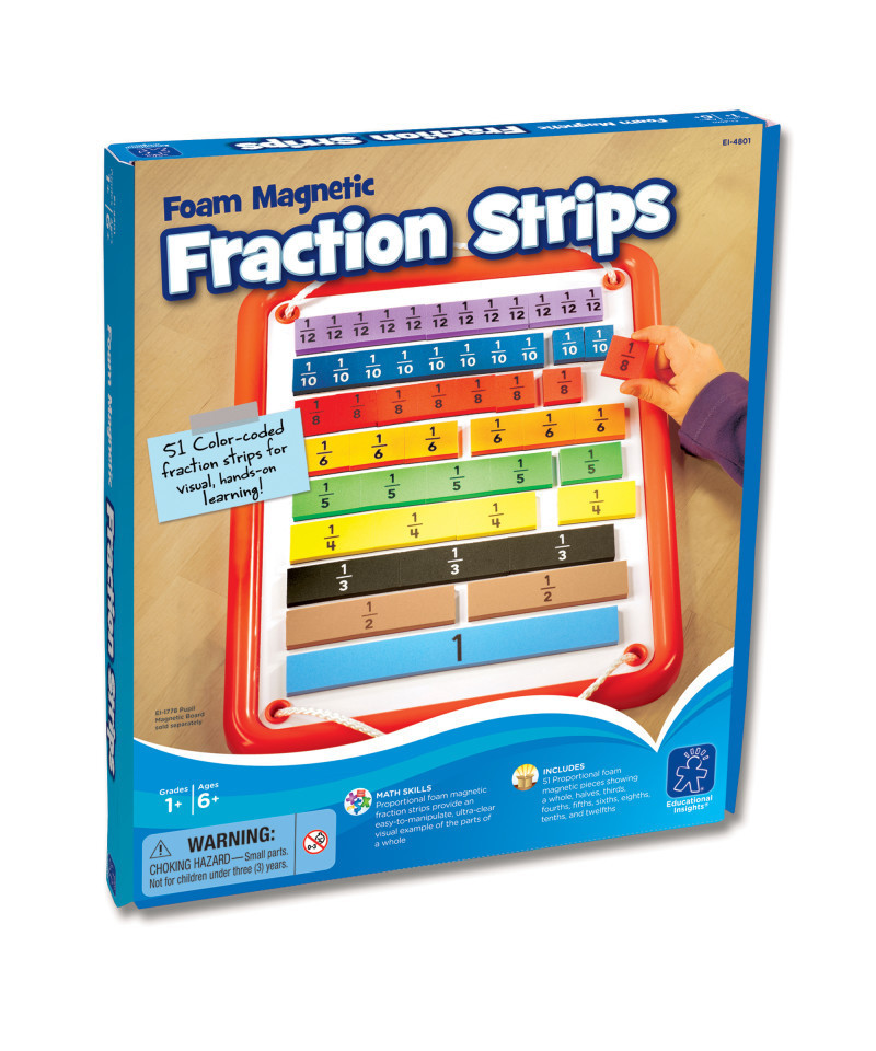 Foam Magnetic Fraction Bars. Fraction bars make learning equivalent fractions a snap! The nine fraction bars are color-coded for easy identification and break into perfect fractions so that students see and feel the parts that make up a whole. Use with any magnetic surface—for whole group instruction and in activity centers. Set includes 51 color-coded, proportional foam magnetic pieces showing fractions in a whole, halves, thirds, fourths, fifths, sixths, eighths, tenths, and twelfths. Grades K and up.