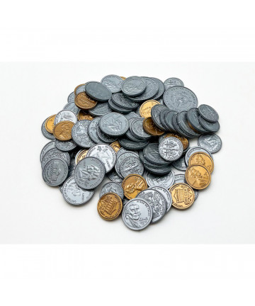 Practice math skills with real-world applications. Includes 110 plastic coins: 30 pennies, 25 nickels, 25 dimes, 25 quarters, and 5 fifty-cent... Add to cart Teacher Created Resources® Play Money: Assorted Coins $5.99