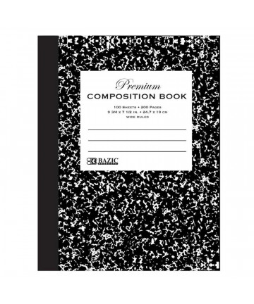 Black marble composition notebooks come with 100 sheets of wide-ruled paper, ready for any assignment, and convenient for on-the-go use! Overall... Add to cart BAZIC Products® Premium Composition Book, Wide Ruled,... $3.49