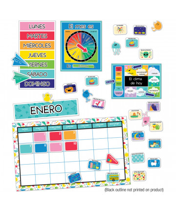 Teach your students the days of the week and month in Spanish! Each 83 piece set includes: 1 Giant Calendar (34"x24"), 12 Month Headings, 33 Dates,... Add to cart Eureka® Color My World Spanish Calendar Bulletin Board Sets $15.49