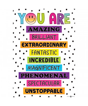 Inspire and motivate kids of all ages. Brightens any classroom! The poster measures 13-3/8" x 19". Add to cart Teacher Created Resources® You Are Amazing Positive Poster $3.99