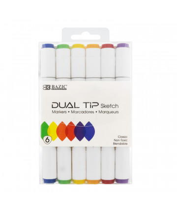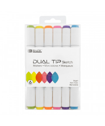 With the double-ended design, you can use 3mm brush tip for sweeping, details, and calligraphic, or the 6.5mm broad strokes chisel tip for quickly... Add to cart BAZIC Products® Dual Tip Sketch Markers, 6 Primary Colors $7.99