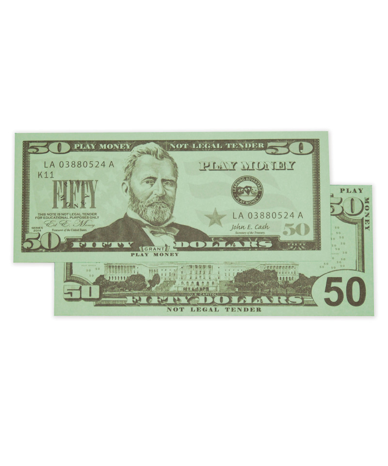 - 50 $50 BILLS INCLUDED -- This set of fifty dollar play bills is great for solitary or group play and an ideal resource for the home, center, classroom or playroom.
