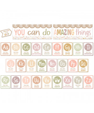 By integrating alphabet cards with uplifting affirmations, this bulletin board becomes the ideal dual-purpose resource for fostering both learning... Add to cart Teacher Created Resources® Terrazzo Tones Alphabet... $13.99