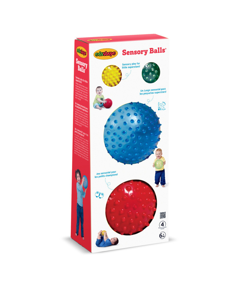 Sensory play for little superstars! Children will love these unique textured balls. They are soft and stimulating. Enhances gross motor and tactile skills, encourages crawling, grasping and coordination. Ideal for stimulation or relaxing body massage! Sensory Ball Mega Pack includes two 7" balls, one Opaque and one See-me, plus two 4" balls, one Opaque and one See-me. Assorted colors. For ages 6 months and up.